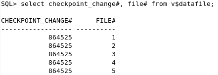Step5:将当前重做日志文件信息写入归档日志文件。查看当前数据文件检查点信息是否一致。