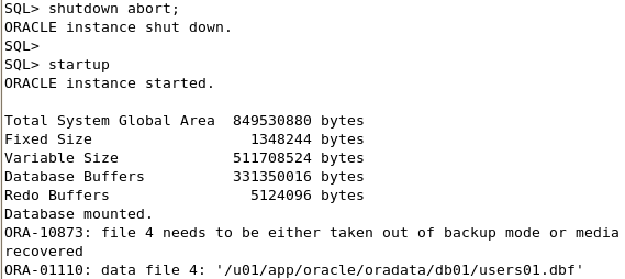 · 以热备表空间USERS为例,此时数据文件头都锁定,备份正在复制文件但是系统奔溃了。显然表空间的数据文件头的SCN与控制文件中的不一致,此时数据库无法打开,会要求介质恢复。此时需要的是结束表空间的备份模式,解锁数据文件头SCN,Oracle会自动使用实例恢复或者使用remove datafile指令实现数据文件的恢复。