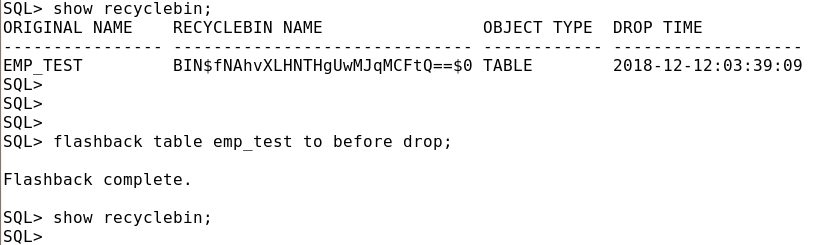 回收站是一个逻辑结构,不具有物理数据结构,只要删除的表信息记录在回收站中就可以通过闪回技术恢复删除的表。