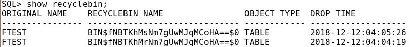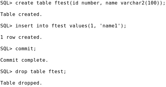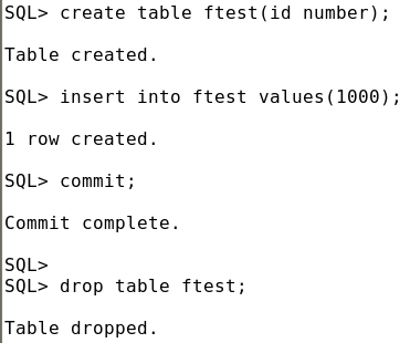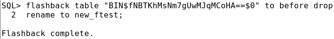 此时,FTEST将从数据库永久删除,并且和该表对应的其他数据库对象也将永久删除。
