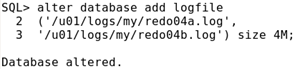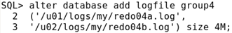 Example:为Oracle Server增加一个重做日志组,组中包含两个成员,大小为4MB,并查询动态性视图确认增加。