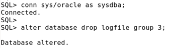 alter database [database] drop logfile {group integer|(‘filename’[,’filename’]…))[,{group integer|(‘filename’[,’filename’]…)}]…