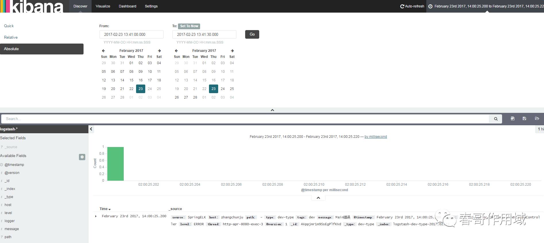至此一个简单的基于spring+spring mvc+redis+elk的日志系统搭建成功了!