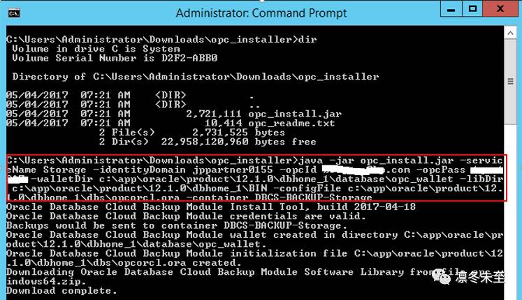 java -jar opc_install.jar -serviceName Storage -identityDomain jppartner0155 -opcId ****** -opcPass ****** -walletDir c:\app\oracle\product\12.1.0\dbhome_1\database\opc_wallet -libDir c:\app\oracle\product\12.1.0\dbhome_1\BIN -configFile c:\app\oracle\product\12.1.0\dbhome_1\dbs\opcorcl.ora -container DBCS-BACKUP-Storage