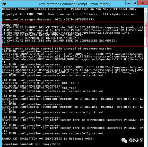 CONFIGURE CHANNEL DEVICE TYPE sbtPARMS='SBT_LIBRARY=c:\app\oracle\product\12.1.0\dbhome_1\BIN\oraopc.dll,ENV=(OPC_PFILE=C:\app\oracle\product\12.1.0\dbhome_1\dbs\opcorcl.ora, ORACLE_HOME=C:\app\oracle\product\12.1.0\dbhome_1)';