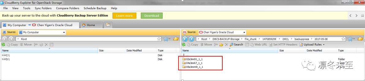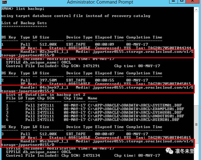 通过上面的工具可以确认数据库已经备份到Oracle Cloud。