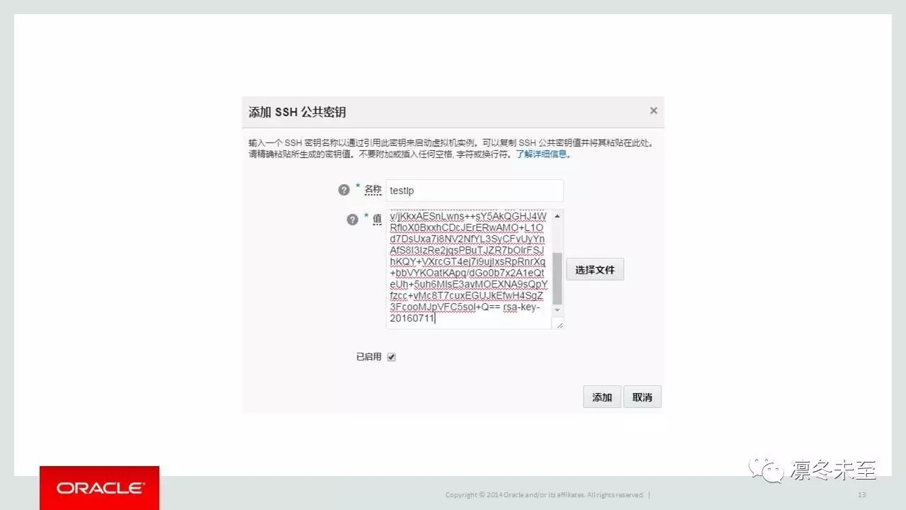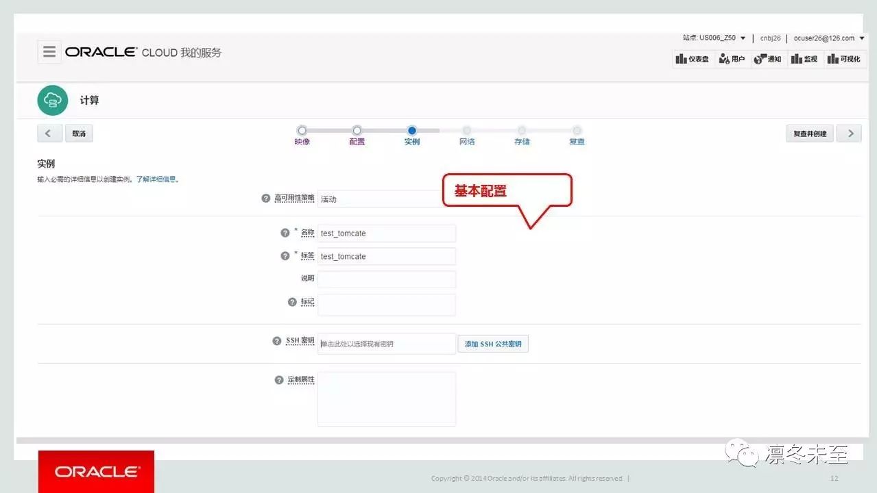 在Oracle公有云配置面板中配置公钥: