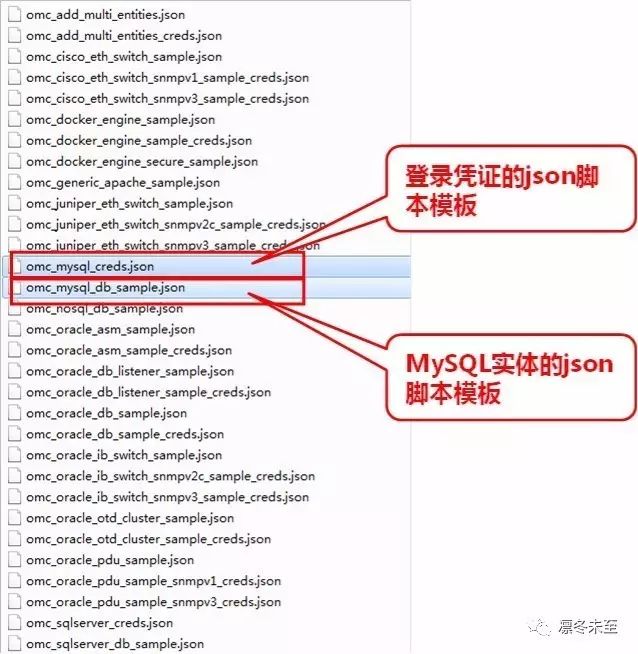 解压zip文件,选择登录凭证的json脚本模板和MySQL数据库实体的json脚本模板。