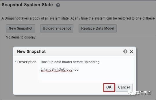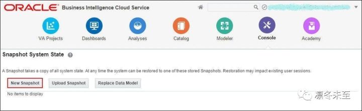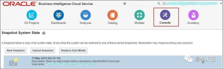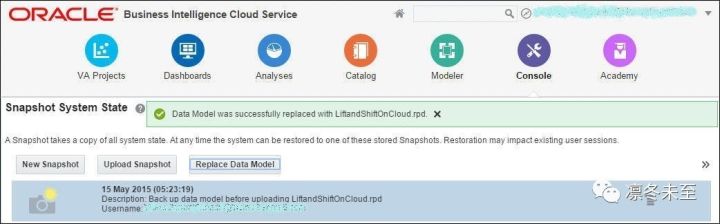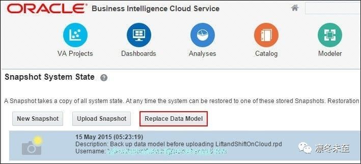 访问Oracle BI云服务的“快照系统状态界面”(Snapshot System State),点击“替换数据模型”(Replace Data Model )按钮: