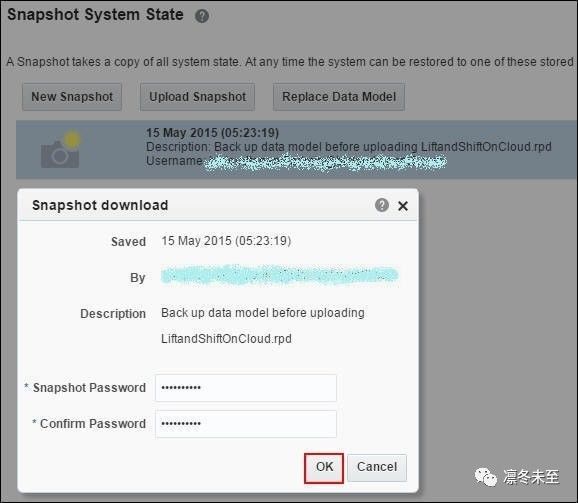 在下载快照的对话框界面,设置快照的密码,点击OK: