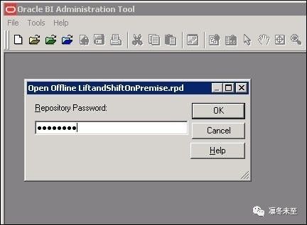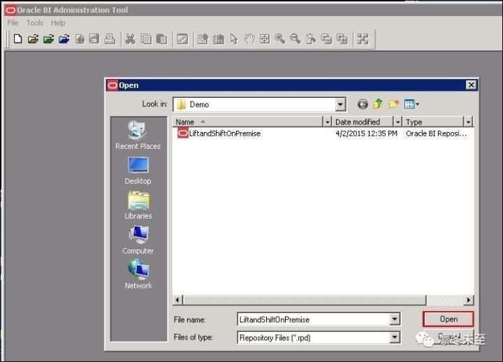 在本地环境中,打开Oracle BI管理工具,查看本地数据模型的连接池信息。本示例中,示例.rpd文件的名称为LiftandShiftOnPremise