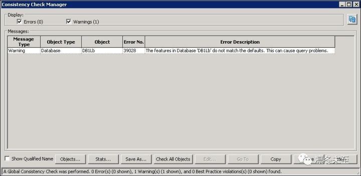 检查一致性检查管理器(Consistency Check Manager)对话框界面,确保没有错误信息提示后,点击Close,关闭窗口: