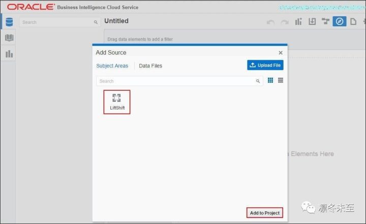 在视觉分析器的“新增数据源”(Add Source)对话框,选中刚刚上传的数据模型“LiftShift”,然后点击“添加到工程”(Add to Project)按钮: