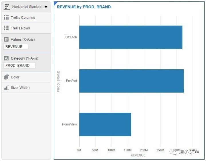 就可以看到相应的可视化效果(本例的数据模型是不同品牌的收入情况展示):