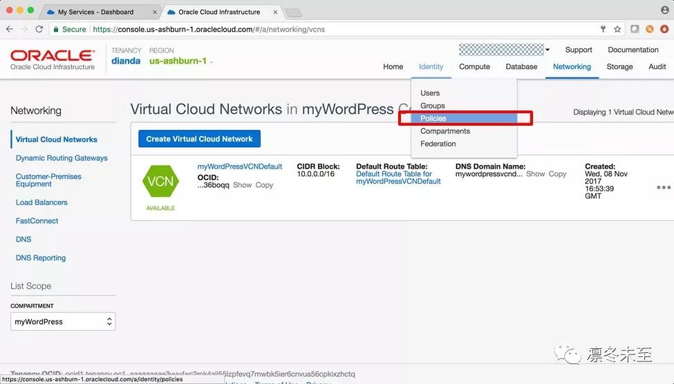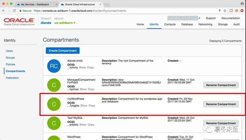 名为“myWordPress”的Compartment已经创建成功,如图: