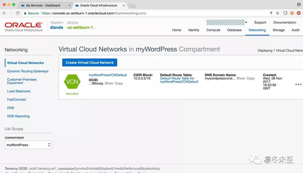 VCN创建完成,如图: