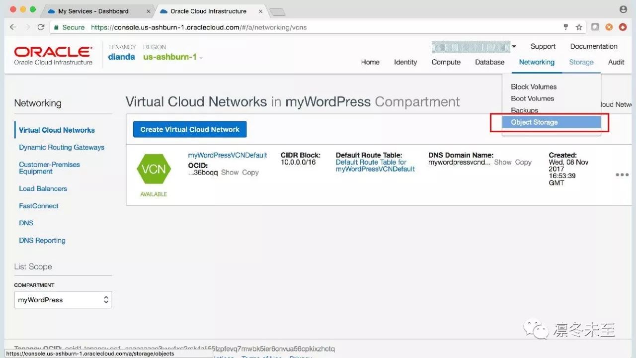 点击“Storage”下拉菜单,选择“Object Storage”选项,如图: