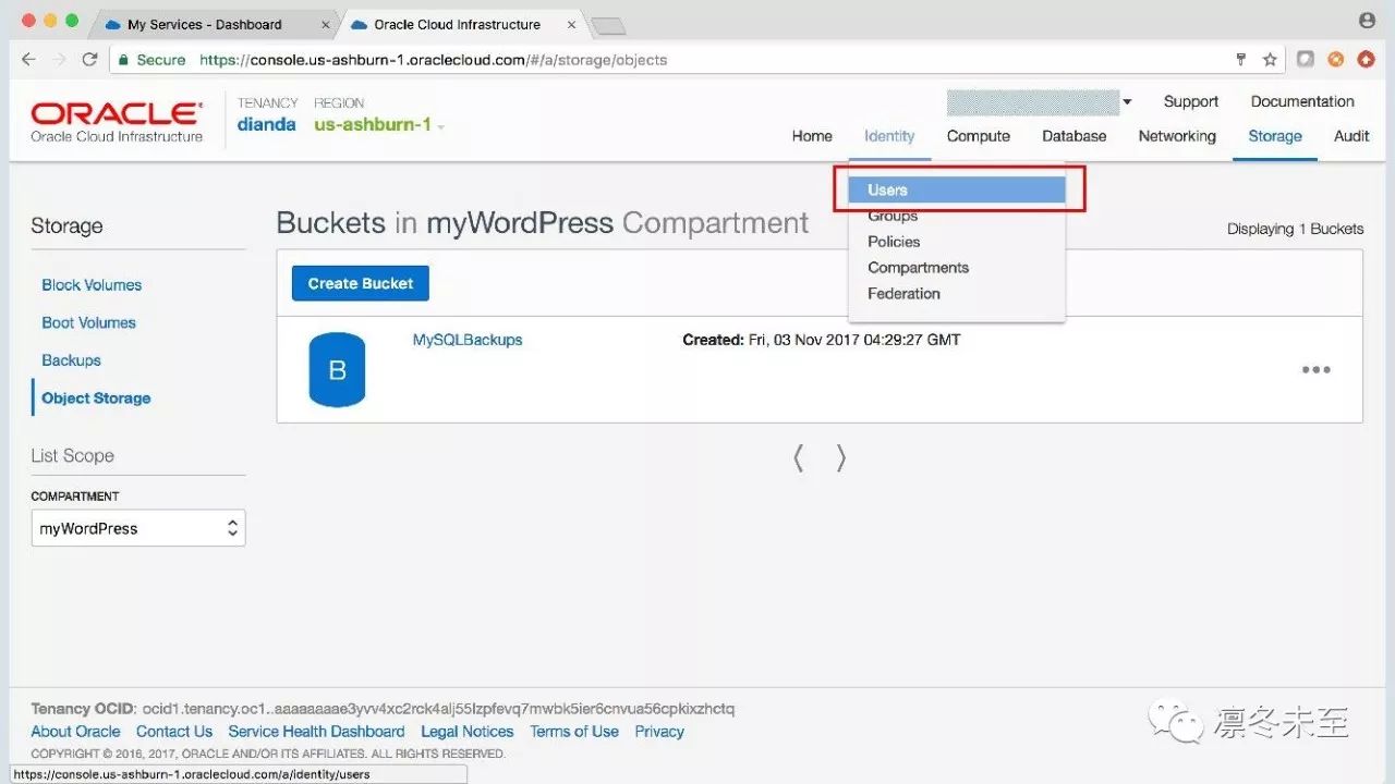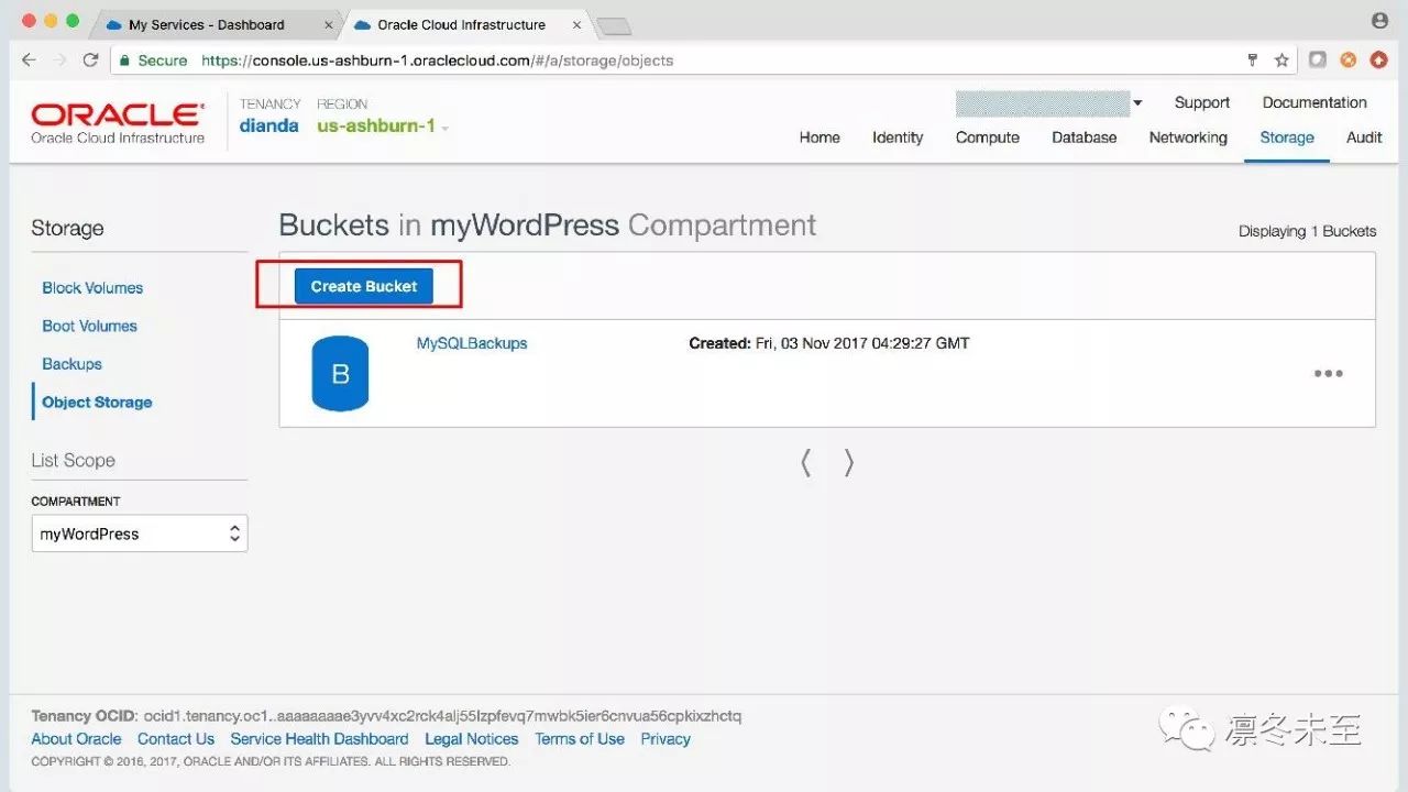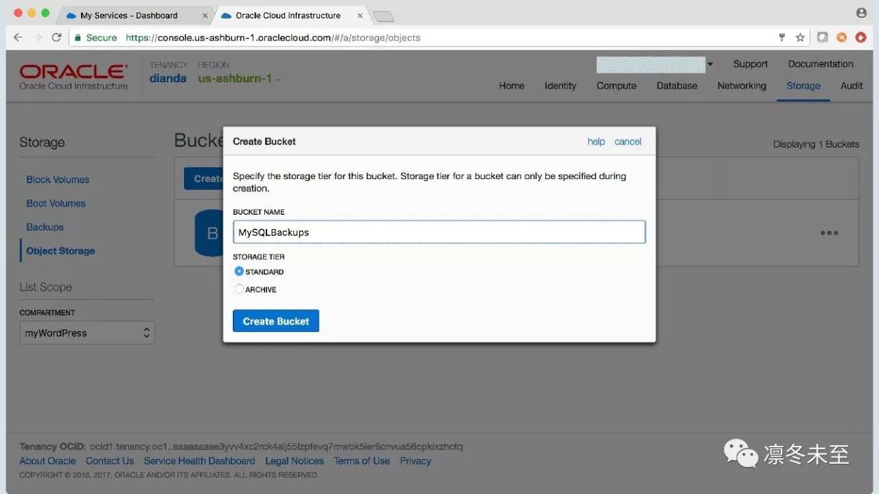第五步:为MySQL备份创建Object Storage Bucket