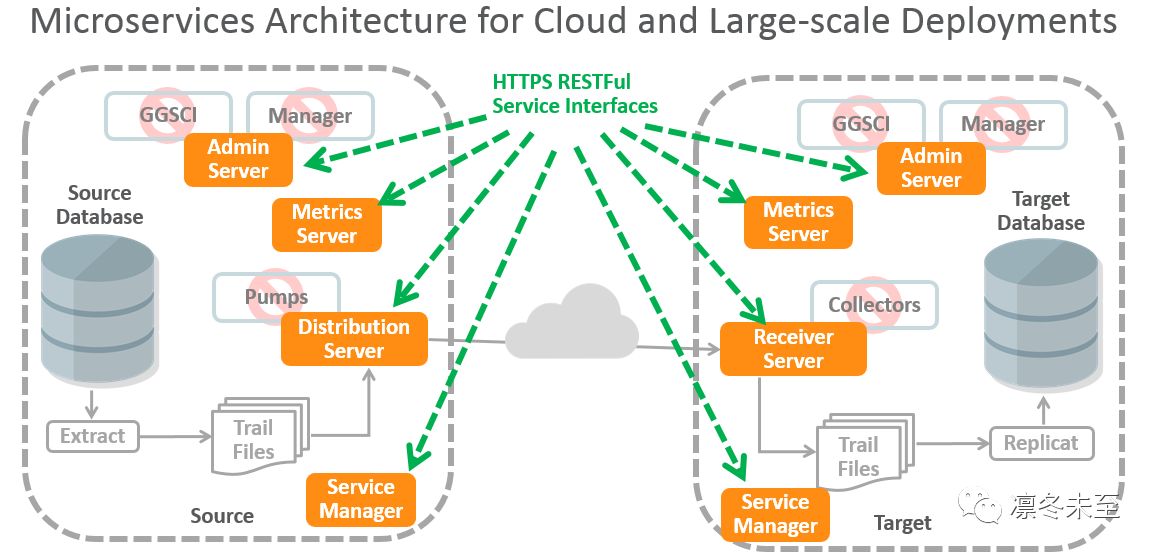 Oracle GoldenGate微服务架构(MA)是由GoldenGate 12.3 引入的。基于REST API,用户通过网页就可以完成OGG服务进程配置,监控和管理全新微服务架构。