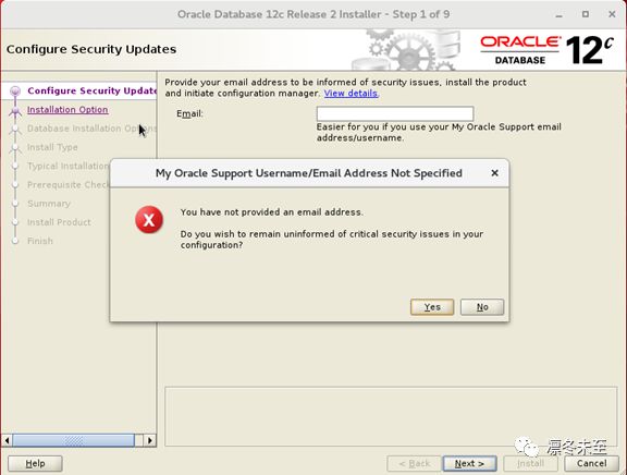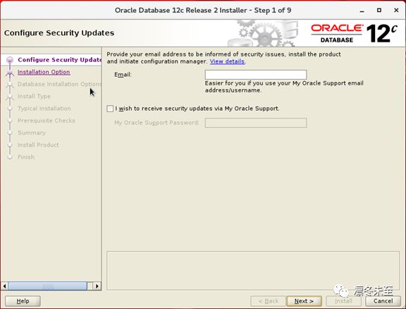 取消选中“我希望通过My Oracle Support获得安全更新”复选框。