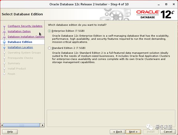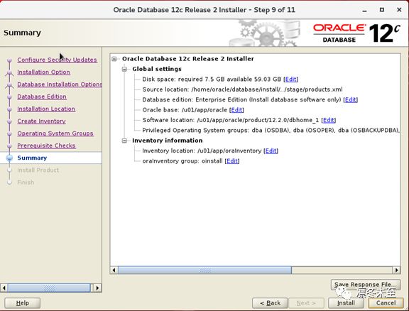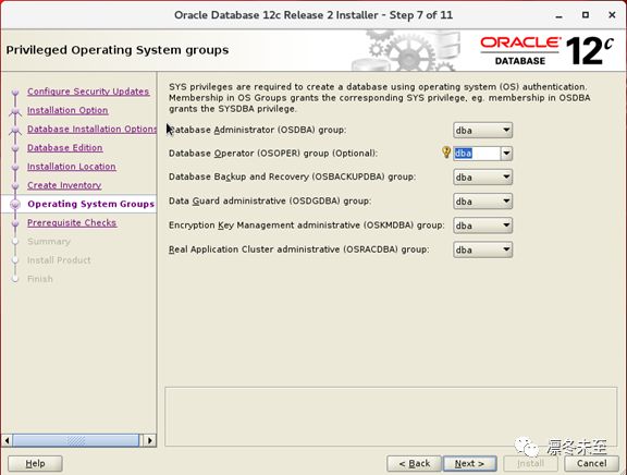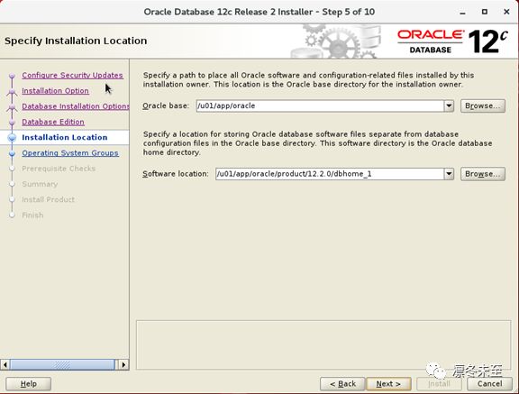 为数据库二进制文件设置“Oracle base”和“software location”,然后点击“Next”。 该软件的位置(ORACLE_HOME)非常重要,因为该目录在本文档中的许多位置都有使用。