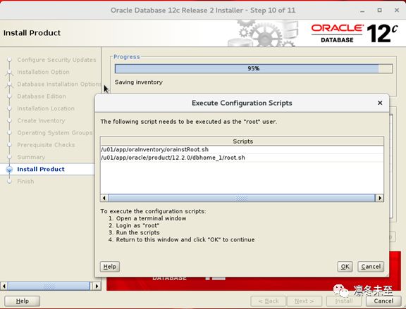 在一个单独的终端中以root身份执行root.sh,然后单击“确定”