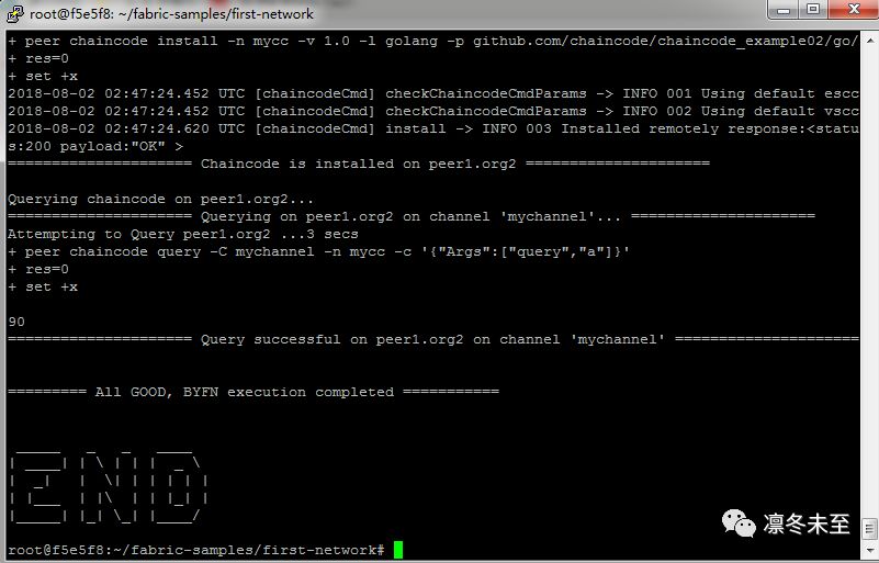 屏幕中出现这个信息,表示我们的超级账本环境已经启动运行了。