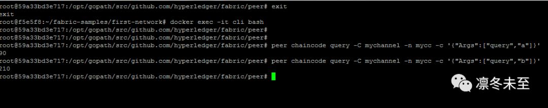 peer chaincode query -C mychannel-n mycc -c '{"Args":["query","a"]}'