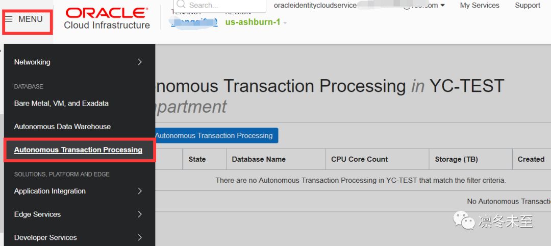 很巧,我手上的账号位于区域us-ashburn-1,正好可以体验ATP。