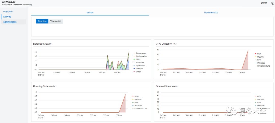 点击“Activity”,查看ATP数据库的主要运行指标,如数据库的活动数、CPU利用率等。