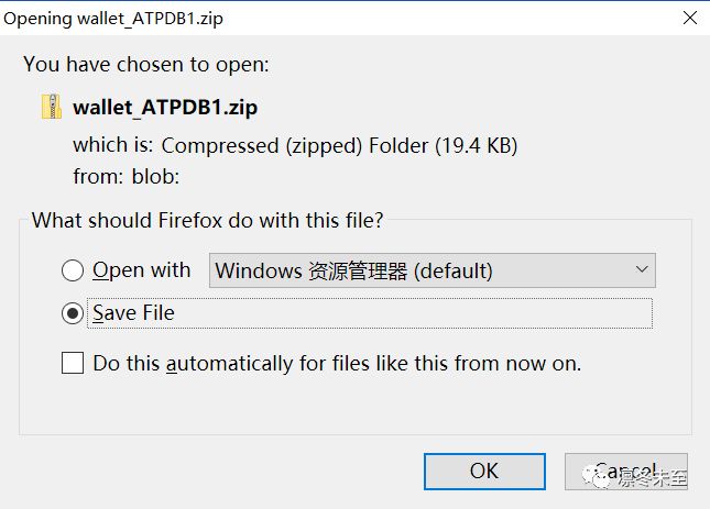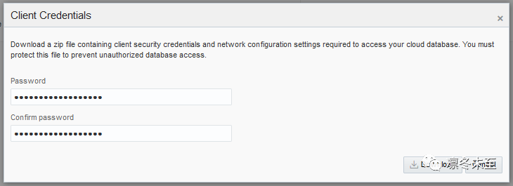 输入管理员口令,点击“Download”下载。系统会生成一个walletzip文件,把这个文件存放一个目录下。注意:一定好妥善保管好这个文件,客户端连接ATP实例时,必须要使用这个文件,如果被其他非授权用户拿到,就会存在数据库安全风险。