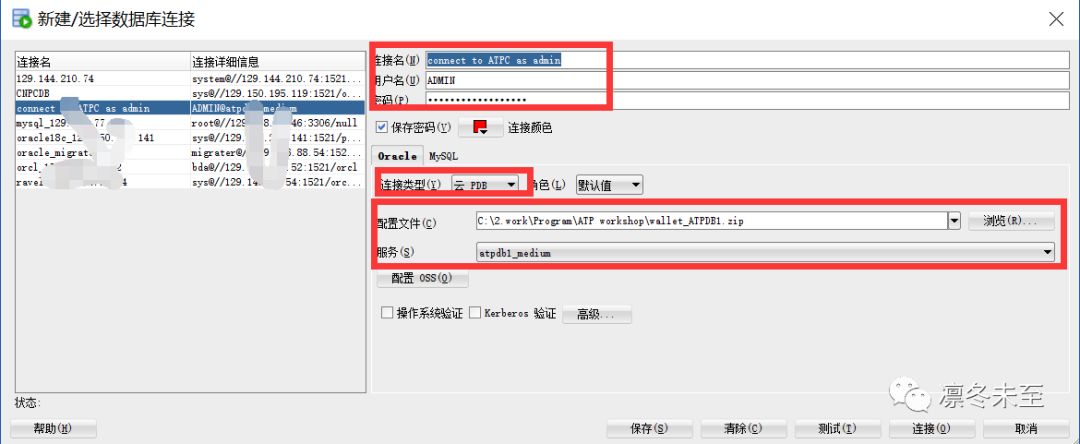 配置完成,先测试一下,测试通过后,点击连接,顺利的连接到ATP实例。如图。