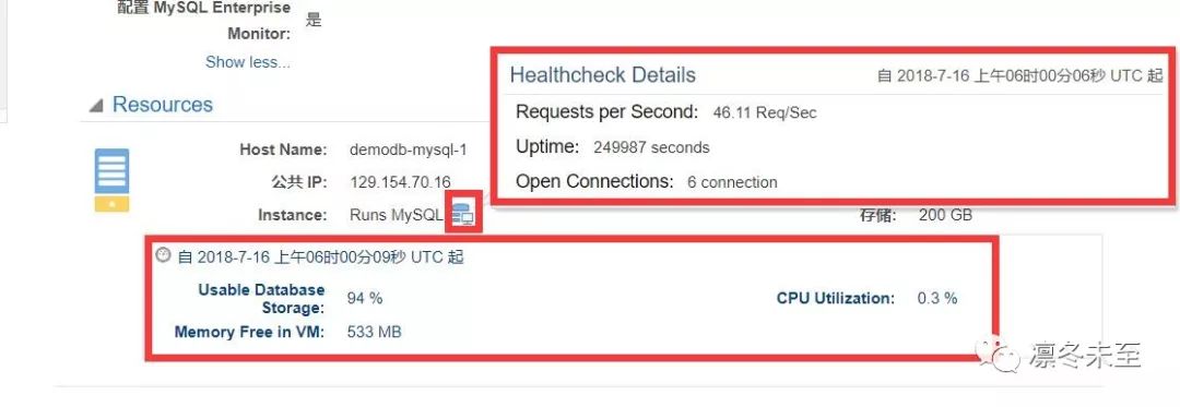 进入企业监控器主页,我们可以通过企业监控器查看MySQL实例的各种运行状态信息,使用方法与本地版完全一致,这也是采用Oracle MySQL云服务的一个好处,自带的企业管理器,无法任何配置和代理。