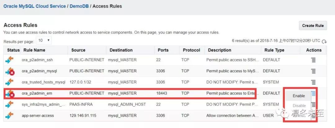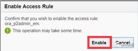 可以看到,有一条访问规则ora_p2admin_em,它的状态是禁用的。这就是企业监控器的访问规则。点击该规则后面的下拉菜单,点击“Enable”。