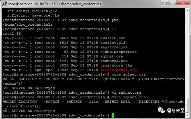 编辑sqlnet.ora文件,将该文件中的[“?/network/admin]替换为拷贝后的工作目录(/home/adwc_credentials).