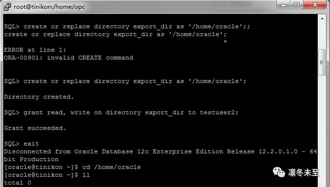 为数据导出创建directory对象,并给用户赋予读写权限。