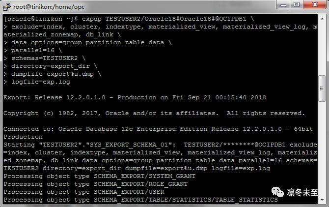 expdp TESTUSER2/Oracle18#Oracle18#@OCIPDB1 \