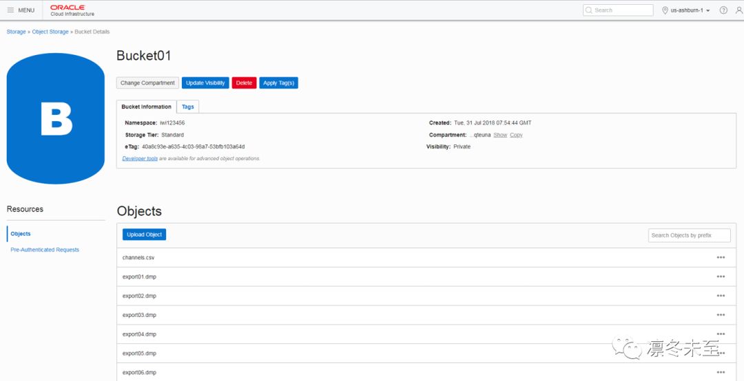 将所有导出的dmp文件上传到OCI对象存储桶中,详细请参照体验2中的相关描述。