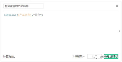 例2,找出“产品名称”中包含“蓝色的”的产品并统计含有“蓝色”的产品与其他产品的利润占比