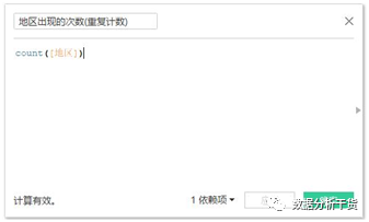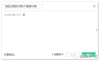 第一步:创建两个字段“地区出现的次数(不重复计数)”和“地区出现的次数(重复计数)”
