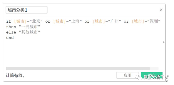 从创建字段里查找fixed函数,会得到该函数的作用是——使用指定的维度计算聚合。它的语法是{Fixed [指定的维度1],[指定的维度2],…,[指定的维度n]:聚合函数[聚合对象]},其中:{}反映的是数组概念,因为如果指定维度,最后聚合出来的结果不是一个数值,而是一组数值。