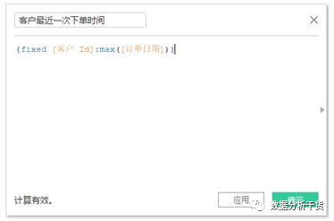 第二步:创建计算字段#客户最近一次下单时间#={fixed[客户ID]:max([订单日期])}