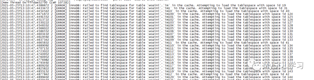 但是我们一旦将innodb_force_recovery>3打开则不会加载物理信息到fil_system,那么这么带来的后果就是,在open table的时候会出现一个报错,然后重新加载fil_space_t和fil_node_t,如下: