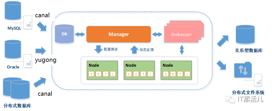 manager运行时推送同步配置到node节点(rpc) node节点将同步状态反馈到manager上(rpc) 基于zookeeper,允许多Node节点之间协同工作。