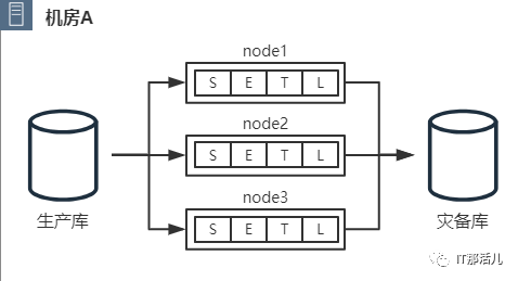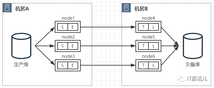 分别部署在两个机房中,其中生产机房中的node负责SE阶段,灾备(目标端)机房中的node负责TL阶段,不同机房中的node通过rpc或http通信。