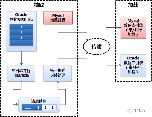 增量数据放入消息队列,保证顺序性,减少物化视图访问量,便于签收、重传,帮助实现并行加载。