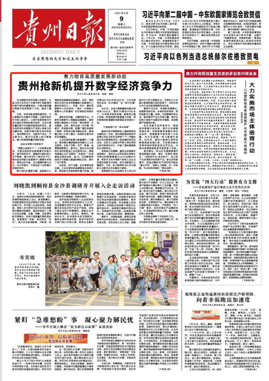 近几日,科技日报、贵州日报等媒体连续刊载相关文章介绍贵州抢新机提升数字经济竞争力,对贵州大数据产业集群做了集中报道。其中,易鲸捷作为贵州发展大数据产业的一张重要“名片”被多次提及,备受关注。
