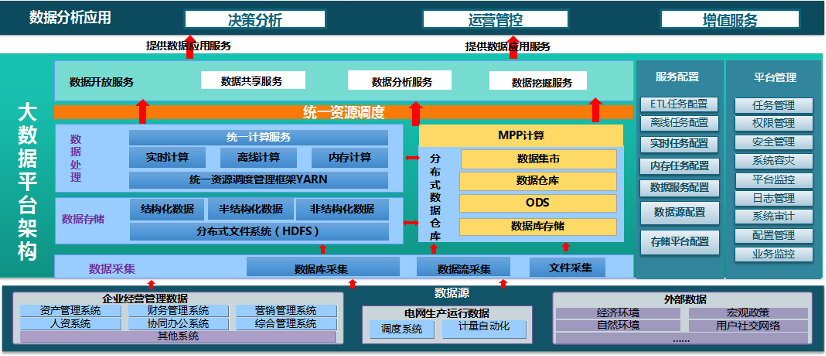 海盒 MPP 数据库作为该公司大数据平台的重要组成节点,能够保障数据仓库/集市的高效运行。同时,海盒MPP数据库与大数据平台其它组件如Hadoop、Hive、HBase的联邦能力,保证了对上层运营管控、决策分析等服务类应用的充分支撑。