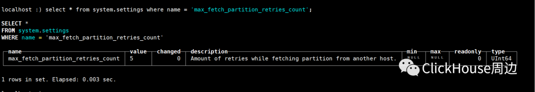 近期文章推荐: ClickHouse 之 FORMAT 应用 ClickHouse数据目录完全解析 Distributed表引擎Insert和Select流程 更多精彩内容欢迎关注微信公众号