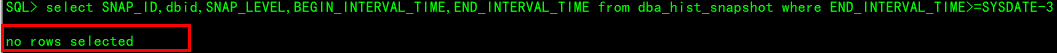 3. 检查snapshot保留时间和快照间隔设置正常,发现DBA_HIST_ACTIVE_SESS_HISTOR有数据,但是没有生成snapshot保留时间和快照间隔: